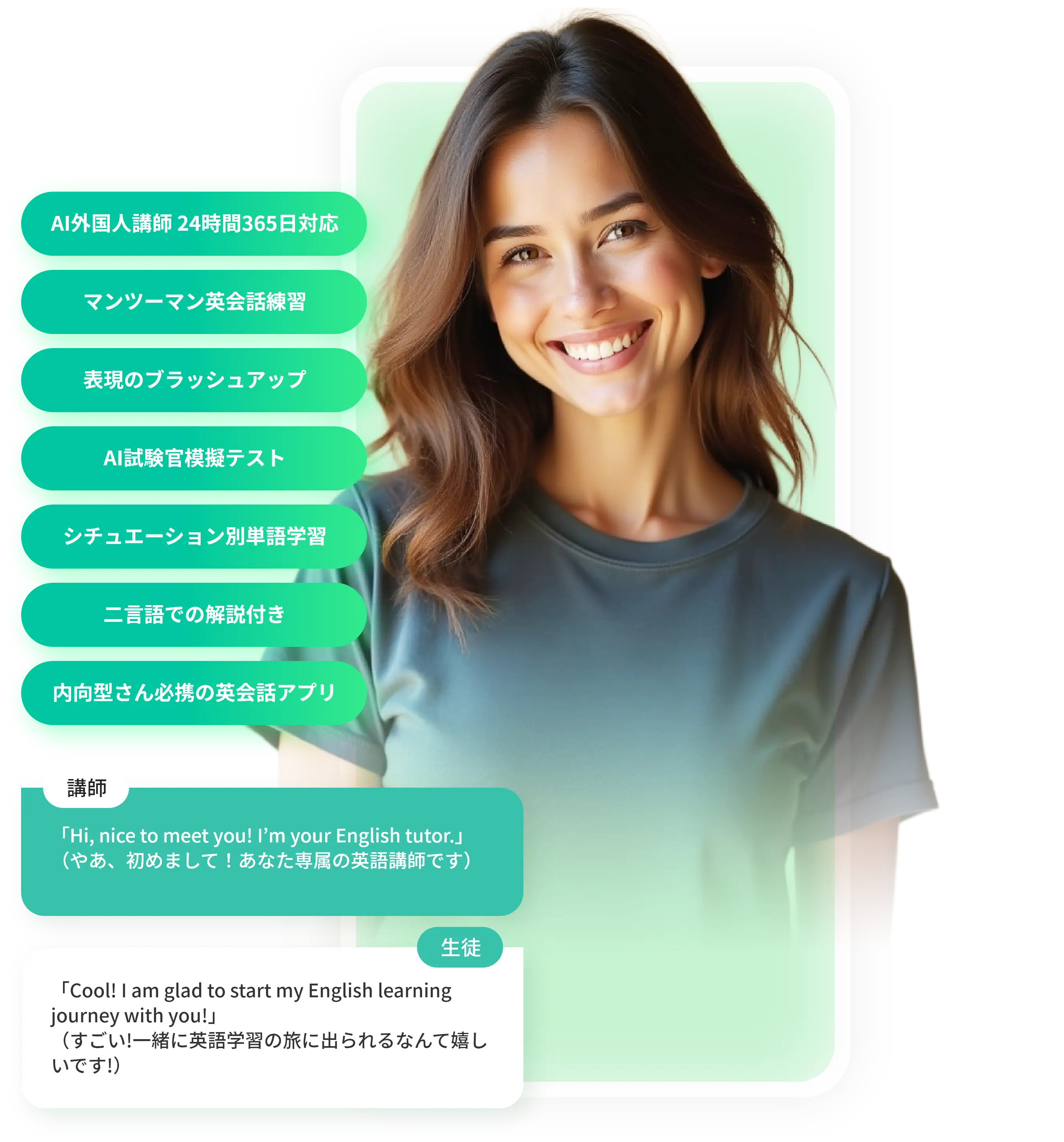 - 発音指導や模擬テストでレベルアップをサポート。